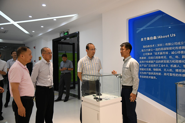 調(diào)研中,張志波同志還參觀了海伯森辦公區(qū) 、工程研發(fā)中心,鼓勵王國安博士團隊在中國高端智能傳感器領(lǐng)域取得更大的成績,并希望下一步與深圳東華、山科控股、華信資本等山東省屬企業(yè)加強合作。