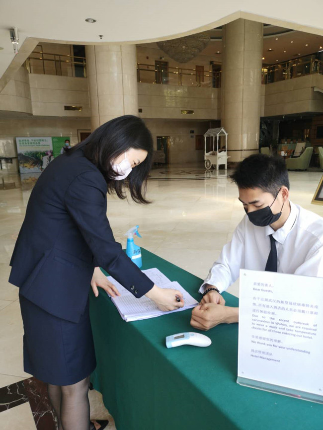 在此期間,她及時(shí)開展拉網(wǎng)式排查,對63名全休員工逐一登記基本情況并進(jìn)行健康跟蹤管理,特別關(guān)注休假回湖北的同事及家人的健康,囑咐大家做好自身防護(hù),在有效防控隔離的前提下,做好同事們的人文關(guān)懷、心理疏導(dǎo)等工作,確保相關(guān)人員住得安心、放心,做到心中有數(shù)。面對諸多心理壓力,牛麗婕坦言:“疫情初期,每一條神經(jīng)都是緊繃的,心中有積極美好的期許,也有對未知的擔(dān)心。讓我感到非常溫暖的是,酒店從上到下每一位同事都在為防控疫情做著最大的努力。”