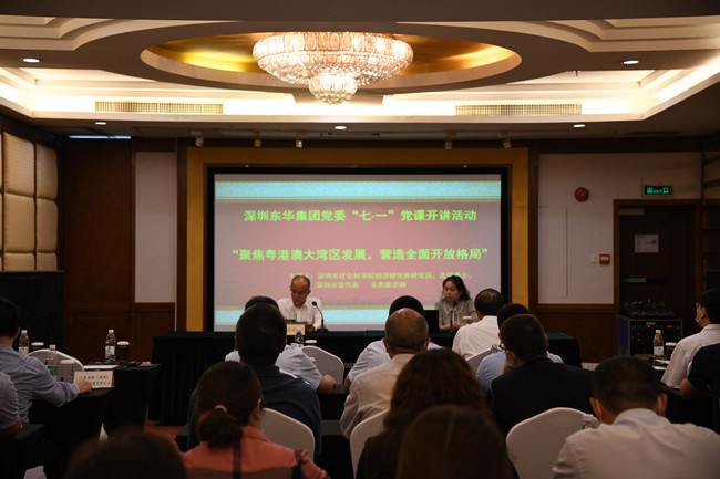 [導讀] 6月18日下午,深圳東華集團黨委邀請深圳市社會科學院經(jīng)濟研究所研究員,法學博士,深圳市黨代表吳燕妮作題為“聚焦粵港澳大灣區(qū)建設,營造全面開放格局”專題黨課。