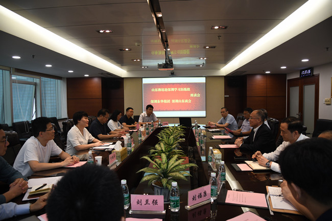 濰坊市駐深辦主任孫學(xué)明,濰坊市赴深圳學(xué)習(xí)歷練組部分成員;深圳市東華實(shí)業(yè)(集團(tuán))有限公司董秘、辦公室主任楊吉平,投資發(fā)展部部長(zhǎng)張化勤,深圳市山東商會(huì)執(zhí)行秘書長(zhǎng)陳振永參加座談。