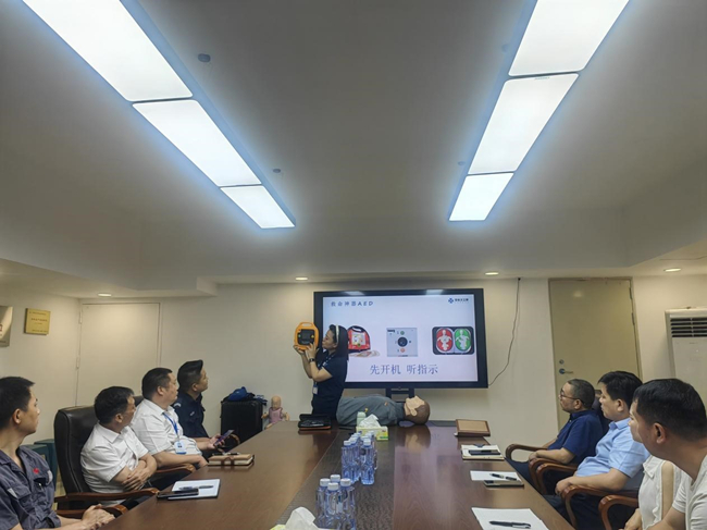 為進(jìn)一步提高東華園區(qū)居民的自救互救能力,普及醫(yī)療急救知識,學(xué)習(xí)掌握應(yīng)急救護(hù)技能,近日,東華物業(yè)公司積極聯(lián)絡(luò)深圳市公共安全義工聯(lián)合會,爭取到在鵬都大廈A、B座1樓大堂各安裝AED一部,提高了鵬都大廈應(yīng)急自救處置能力。6月12日,東華物業(yè)公司邀請深圳市公共安全義工聯(lián)合會三星導(dǎo)師朱卉開展應(yīng)急救護(hù)知識講座。深圳東華審計(jì)法務(wù)部、安全管理部部長華東,東華物業(yè)公司董事長李全法、總經(jīng)理夏天明以及東華物業(yè)公司全體員工參加了本次培訓(xùn)。