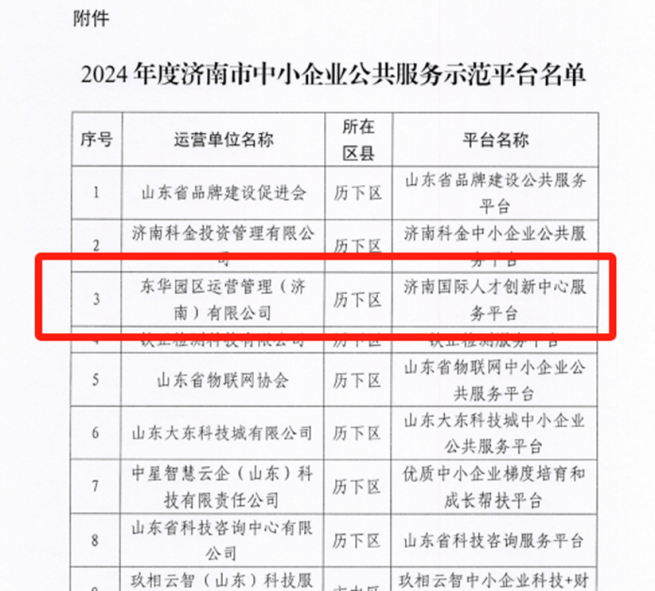 近日,從濟(jì)南市工信局獲悉,濟(jì)南國際人才創(chuàng)新中心成功獲評2024年度濟(jì)南市中小企業(yè)公共服務(wù)示范平臺和2024年度濟(jì)南市小型微型創(chuàng)業(yè)創(chuàng)新示范基地。