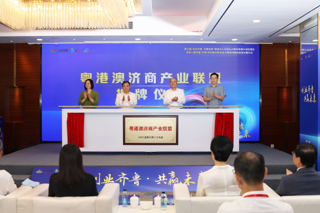 活動(dòng)中,山東省委組織部人才工作二處負(fù)責(zé)同志頒發(fā)了濟(jì)南市“校友雙招雙引大使”聘書,濟(jì)南市委組織部副部長(zhǎng)、市委人才辦常務(wù)副主任王玉躍頒發(fā)了“海右伯樂(lè)”聘書,“粵港澳濟(jì)商產(chǎn)業(yè)聯(lián)盟”正式揭牌,與會(huì)領(lǐng)導(dǎo)共同啟動(dòng)大賽路演儀式。