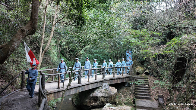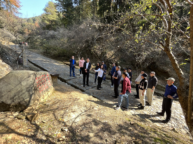 沿著崎嶇的道路,黨員干部們隨后來到了梅關(guān)古道。這里被稱為“嶺南第一關(guān)”,是一條用碎石砌成的千年古道。當(dāng)年,開國元勛陳毅帶領(lǐng)部隊轉(zhuǎn)戰(zhàn)梅嶺一帶,進(jìn)行了艱苦卓絕的三年游擊戰(zhàn)爭,留下了光輝的足跡,在臨危之際寫下了壯志凌云的《梅嶺三章》革命詩。黨員干部們認(rèn)真聆聽了帶隊老師的講解,深刻感受到革命先輩為中華民族崛起所做的不懈努力和豐功偉績。