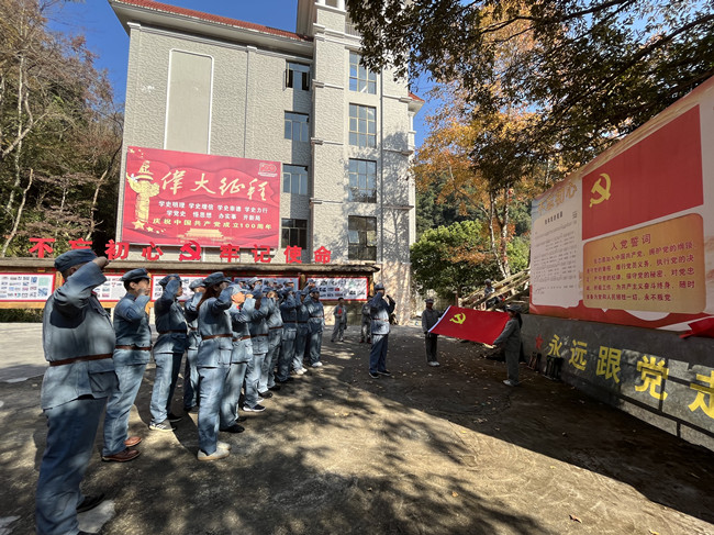隨后,黨員干部們前往了位于粵北樂昌大山深處的龍王潭。這里是紅軍長征戰(zhàn)斗過的地方,中央紅軍充分發(fā)揚不怕犧牲、艱苦奮斗的精神,連續(xù)突破了國民黨設(shè)置的三道封鎖線,順利通過了中央紅軍萬里征途的第一站。在燦爛的陽光和火紅的黨旗下,全體黨員神情堅定地重溫了入黨誓詞,進(jìn)一步牢記了入黨時的莊嚴(yán)承諾,堅定了理想信念。